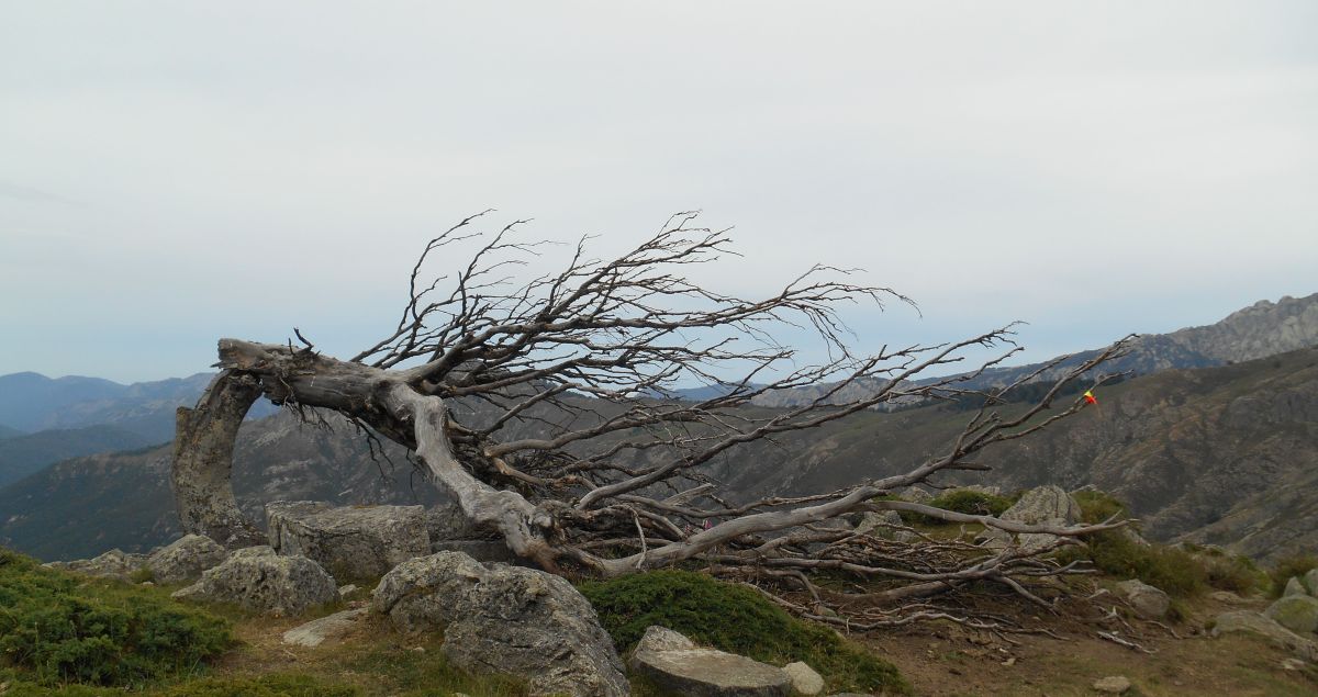 Szlak przechodzi w pobliżu przełęczy Col de Verghio i po krótkim odcinku na drodze asfaltowej dochodzę do stacji narciarskiej Le Castel de Vergio (1404 m). Przechodząc obok hotelu i pola biwakowego zauważam parę Francuzów, z którymi spotykałem się na poprzednich etapach. Mieszkają oni pół roku w okolicach Ajaccio, otrzymałem od nich kilka ciekawych informacji dotyczących szlaku GR20. Oni tez mnie zauważają i wychodzą mi na powitanie. Rozmawiamy przez chwile, dowiaduje się od nich, ze na popołudnie przewidywane są opady deszczu i burze i ze oni decydują zatrzymać się na tym etapie (sami już wiele razy przechodzili etapy GR20). Zegnamy się uściskiem dłoni i decyduje się na zwlekać, gdyż czeka mnie jeszcze parę godzin marszu przed dojściem do schroniska Manganu.