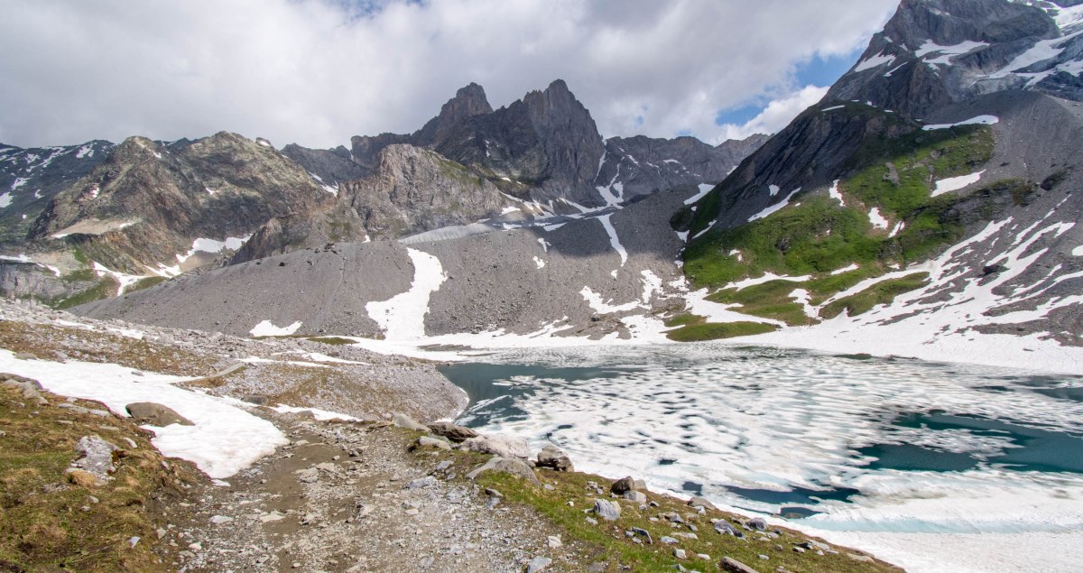 Kolejnym charakterystycznym miejscem jest jezioro Lac des Vaches (jezioro krów / krowie jezioro), po przejściu którego czeka mnie długie zejście do miasteczka Pralognan-la-Vanoise. Po drodze mijam schronisko Barmettes i kontynuując zejście słyszę nadchodzącą burzę. Trwa około 15-stu minut i towarzyszą jej opady gradu – małe, groszkowe.